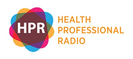 Health Professional Radio logo with white "HPR" text inside a colorful, overlapping shape next to orange "Health Professional Radio" text on a white background.
